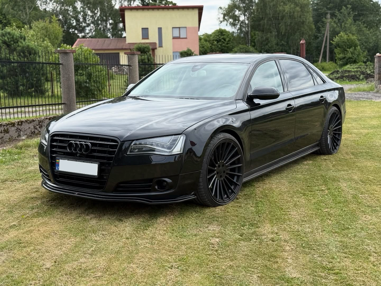 Audi A8 automobilis papuoštas pilnu MaxtonDesign papildomų apdailų komplektu.