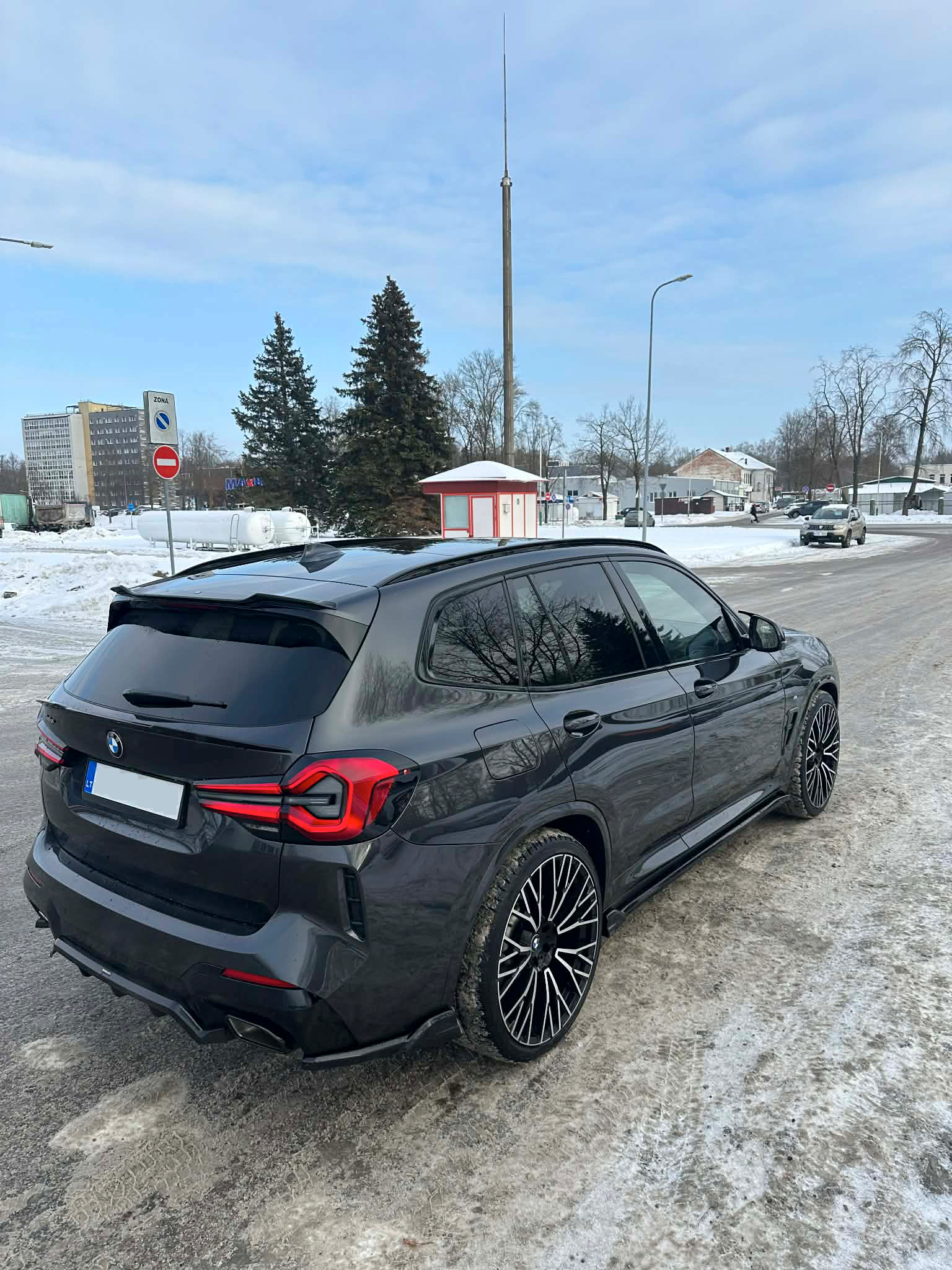 BMW X3 G01 Facelift automobilis papuoštas pilnu MaxtonDesign papildomų apdailų komplektu + performance smulkmenos bei R22 ratlankiais su padangomis bei davikliais.