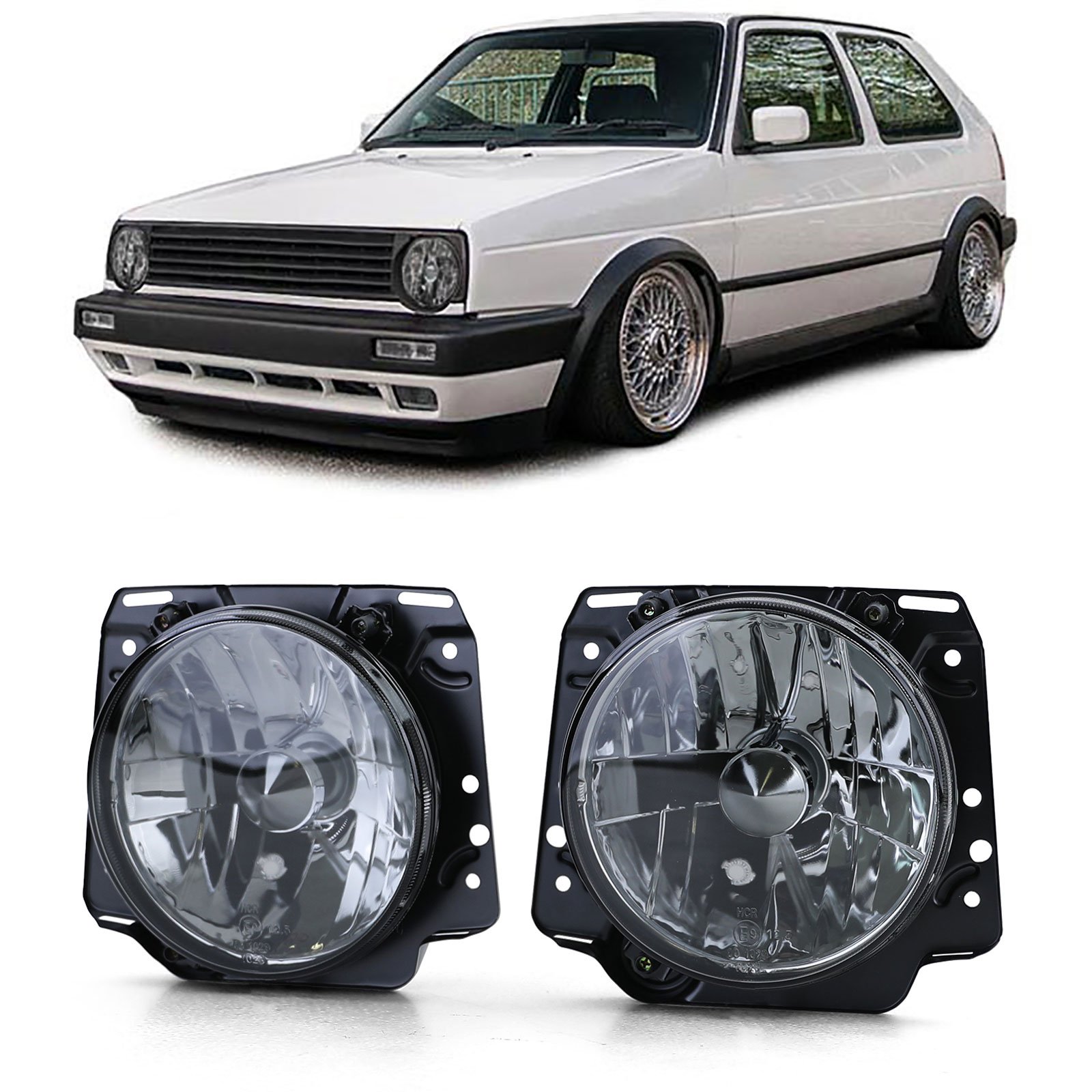 Black clear glass headlights smoke for VW Golf 2 83-91