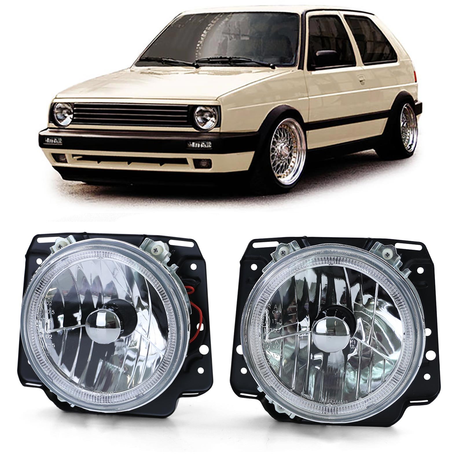 Clear glass Angel Eyes headlights chrome for VW Golf 2 83-91