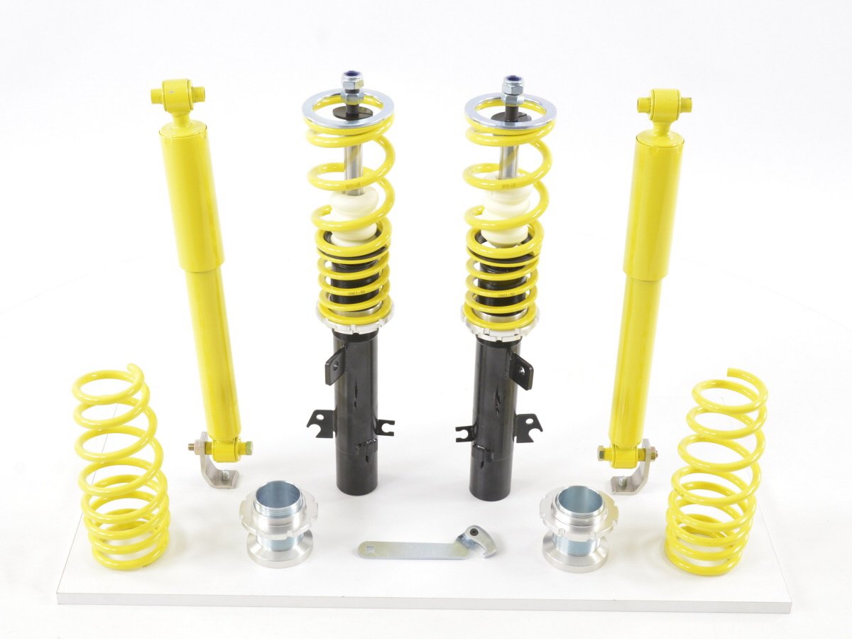 FK coilover kit sports suspension Peugeot 207 CC Bj. From 2007 with 51mm strut The entry-level model from FK at a reasonable price. The ideal start into the tuning world. The high-quality, fully galvanized housing for a long service life is provided with a thread which, externally adjustable, from a moderate to an extreme lowering within the tested adjustment range leaves nothing to be desired. The SM trolleys can be adjusted quickly and easily using the hook wrenches supplied. The adjustment range is 35-65 mm depending on the vehicle. A parts certificate for easy entry is a matter of course. Damper tuning with many years of experience The many years of experience of FK, one of the oldest companies in Germany that develops and manufactures coilover suspension components itself, ensures optimal driving behavior with the highest possible residual comfort. The FK SM suspensions are direct offshoots of the well-known Highsport and Königsport suspensions. The damper settings have been developed in extensive tests. This significantly reduces the tendency to roll and the vehicle reacts more directly in all driving situations. Only high quality damper cartridges are used which contain all the necessary features of a modern sports damper. Such as a chrome-plated piston rod and a high-quality sealing package for optimal guidance and low-friction running. FK SM coilovers: lowering, performance with experience at an affordable price High-quality components with optimally matched dampers in the externally height-adjustable coilover kit. The FK SM chassis is the first choice for everyone who wants to tune their vehicle. – Parts certificate according to § 19/3 (you will receive access to the download center by email) – simple, stepless, individual height adjustment in the tested adjustment range – more driving fun thanks to excellent cornering behavior – sporty tight coordination – First class quality for a long service life – High-quality galvanization of the coilover struts to protect against corrosion – Springs made of extremely resistant chrome-silicon steel with subsequent plastic coating – Optimally coordinated, FK quality sport dampers – High quality CNC machined aluminum components (partly anodized) – Complete solution ready for installation – New and original packaging – Immediately available Scope of delivery: 1 x FK SM coilover kit with scope of delivery developed specifically for the vehicle and hook wrench 1 x parts certificate according to §19 / 3 for download 1 x assembly instruction
