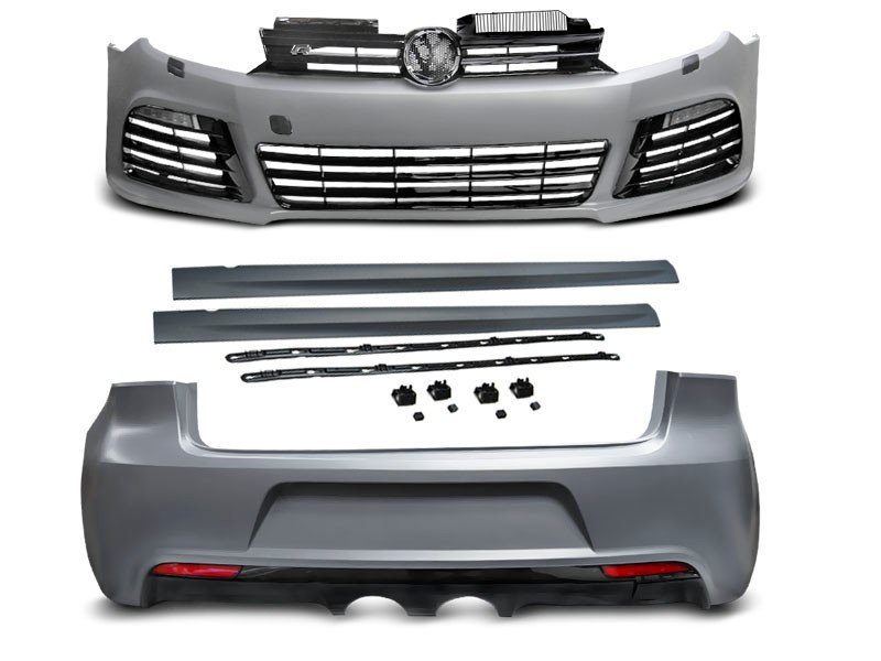 Body kit R-Style.Includes: Front bumper, rear bumper and side skirts.Made of polypropylene.Car body version: HATCHBACK Set includes: FRONT BUMPER- washer holes- washer nozzle cover- tow hook cover- lower grille- mesh grille- license plate frame- outer grille- DRL lightREAR BUMPER- tow hook cover – diffusor with single outlet twin muffler- light reflector