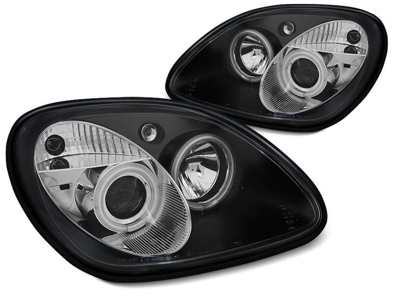 „Projector” tipo priekiniai žibintai su dvigubais „halo” žiedais.. Stačiakampis kištukas. Kvadratiniam kištukui reikalingas adapteris. 100% visiskai naujas, eina dviese (Kairė Dešinė). Patvirtinimas: E-žymėtas – gatviniam legaliam. Informacija Stovėjimo šviesa: „halo” žiedais.Posūkio signalo lemputė: P21W Artimos šviesos: H1 įtrauktos Tolimosios šviesos: H1 įtrauktos Reguliavimas: rankinis (elektrinis reguliatorius negali būti montuojamas). „Angel eyes”