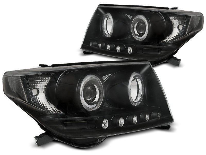 Priekiniai žibintai TOYOTA LAND CRUISER FJ200 07-12 „Angel Eyes” Juodi